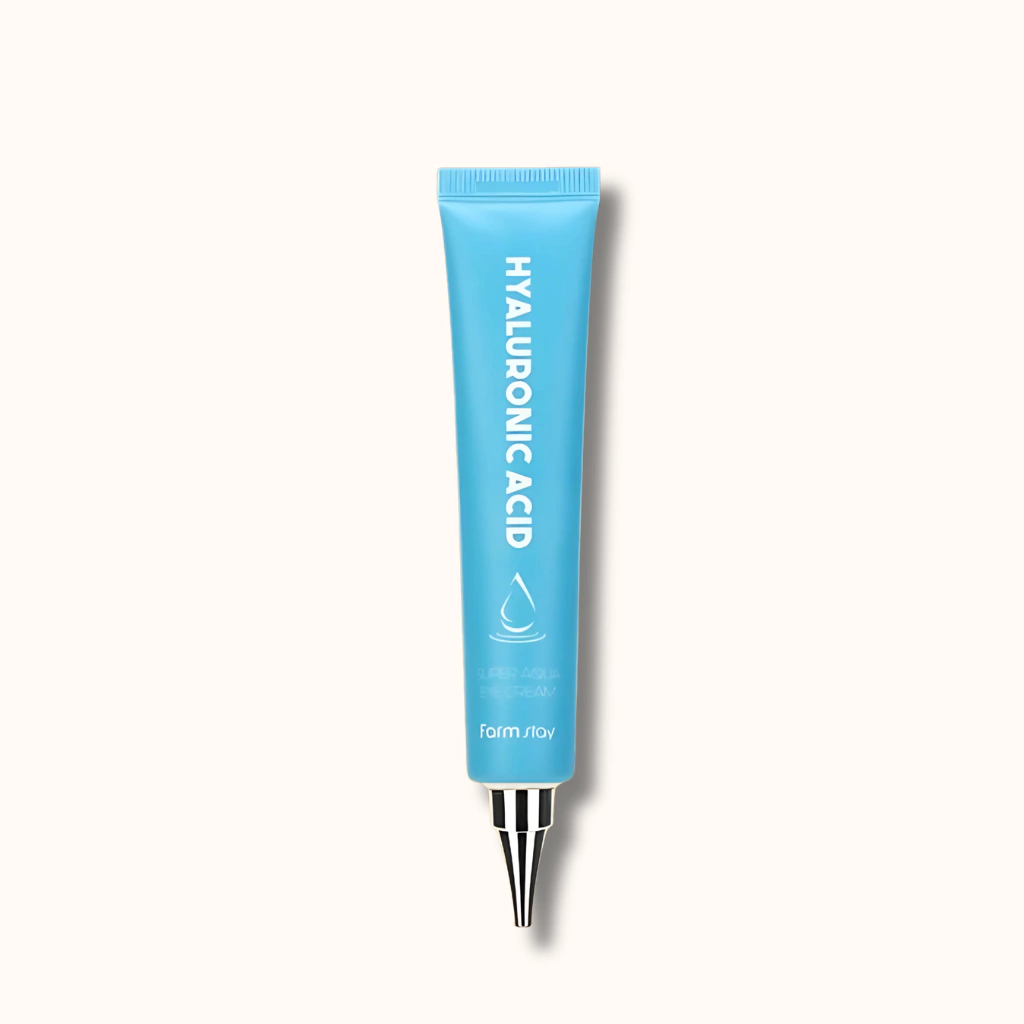 La Hyaluronic Acid Super Aqua Eye Cream de Farm Stay es una crema para el contorno de ojos altamente hidratante que utiliza ácido hialurónico como su ingrediente principal. Su fórmula está diseñada para reducir la apariencia de ojeras, líneas finas y otras señales de fatiga, brindando un aspecto más fresco y rejuvenecido alrededor de los ojos.