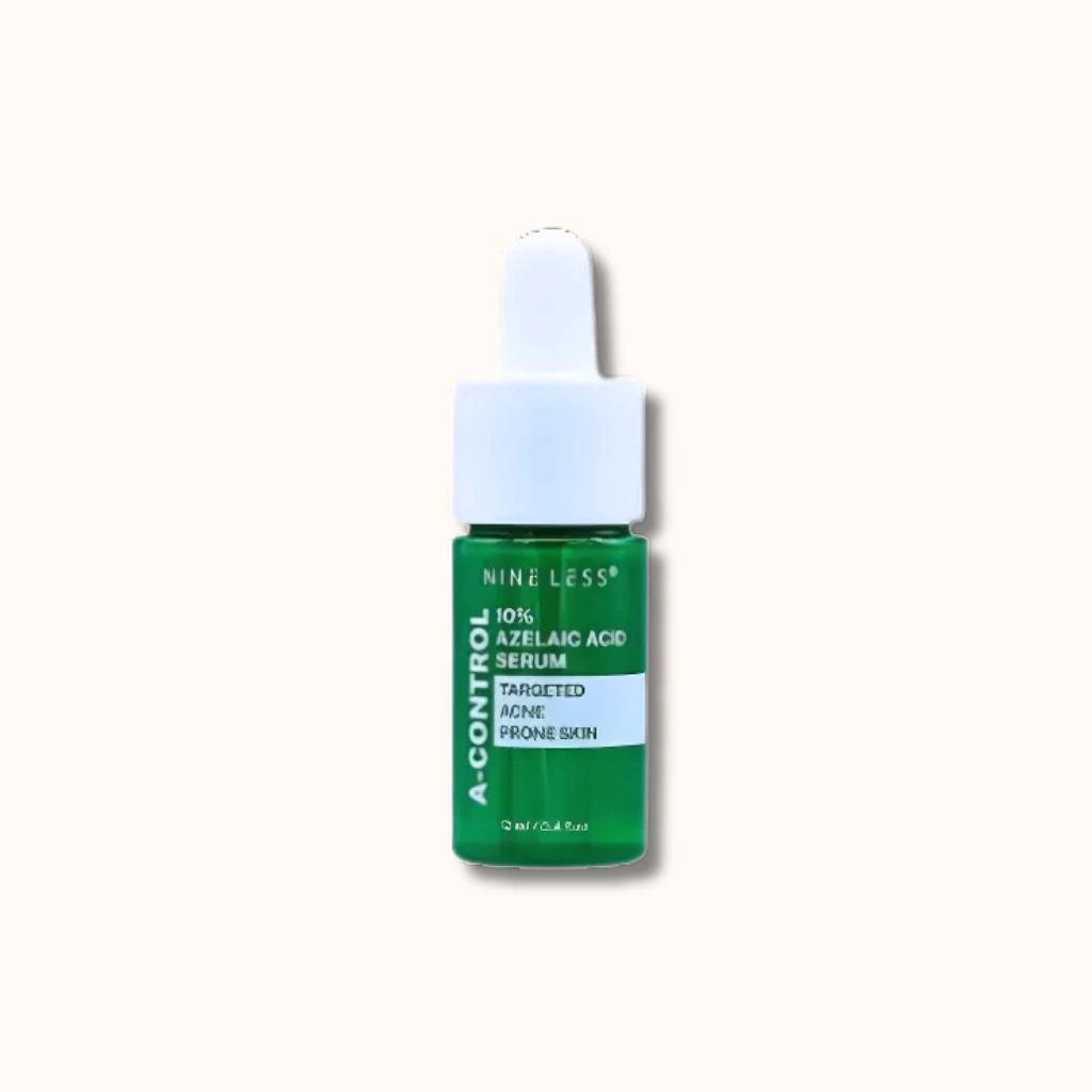 El [NINE LESS] A-Control 10% Azelaic Acid Serum Mini 12ml es un suero facial formulado con ácido azelaico al 10%, diseñado para tratar el acné, la rosácea y otras imperfecciones de la piel. El ácido azelaico es conocido por sus propiedades antiinflamatorias y antibacterianas, lo que lo convierte en un ingrediente efectivo para mejorar la textura de la piel, reducir las manchas y controlar el exceso de sebo. Este tamaño mini de 12 ml es perfecto para probar el producto o para llevar de viaje. Con el uso regular, el suero ayuda a dejar la piel más clara, suave y equilibrada.