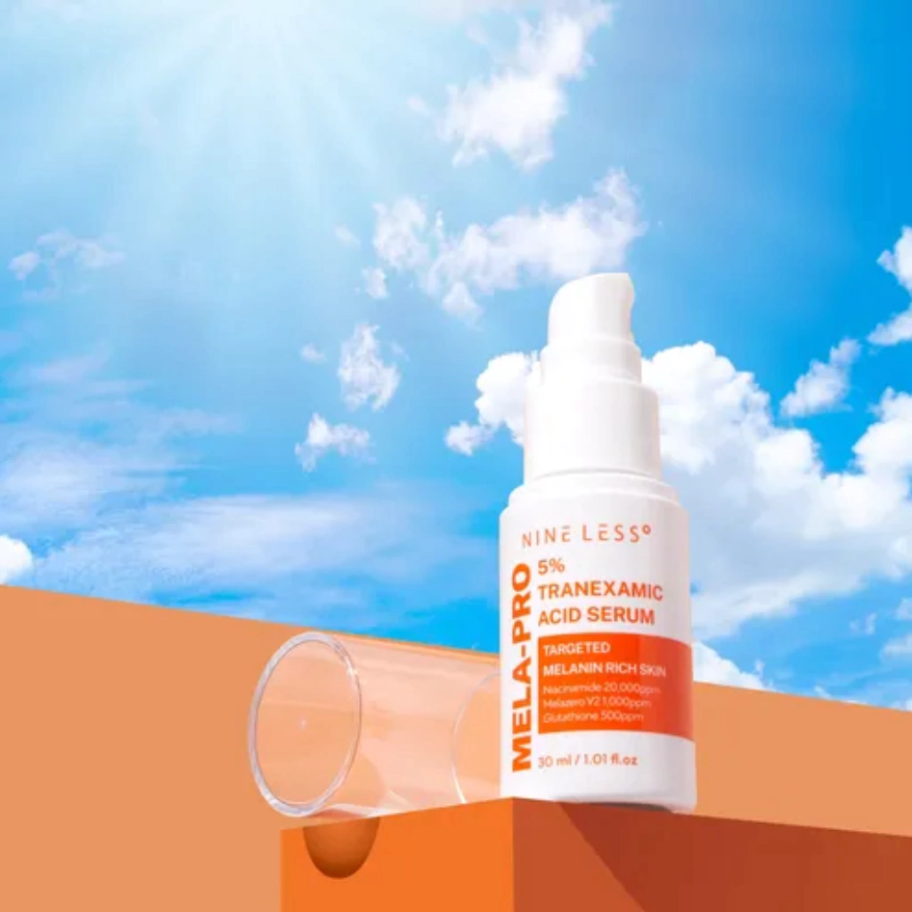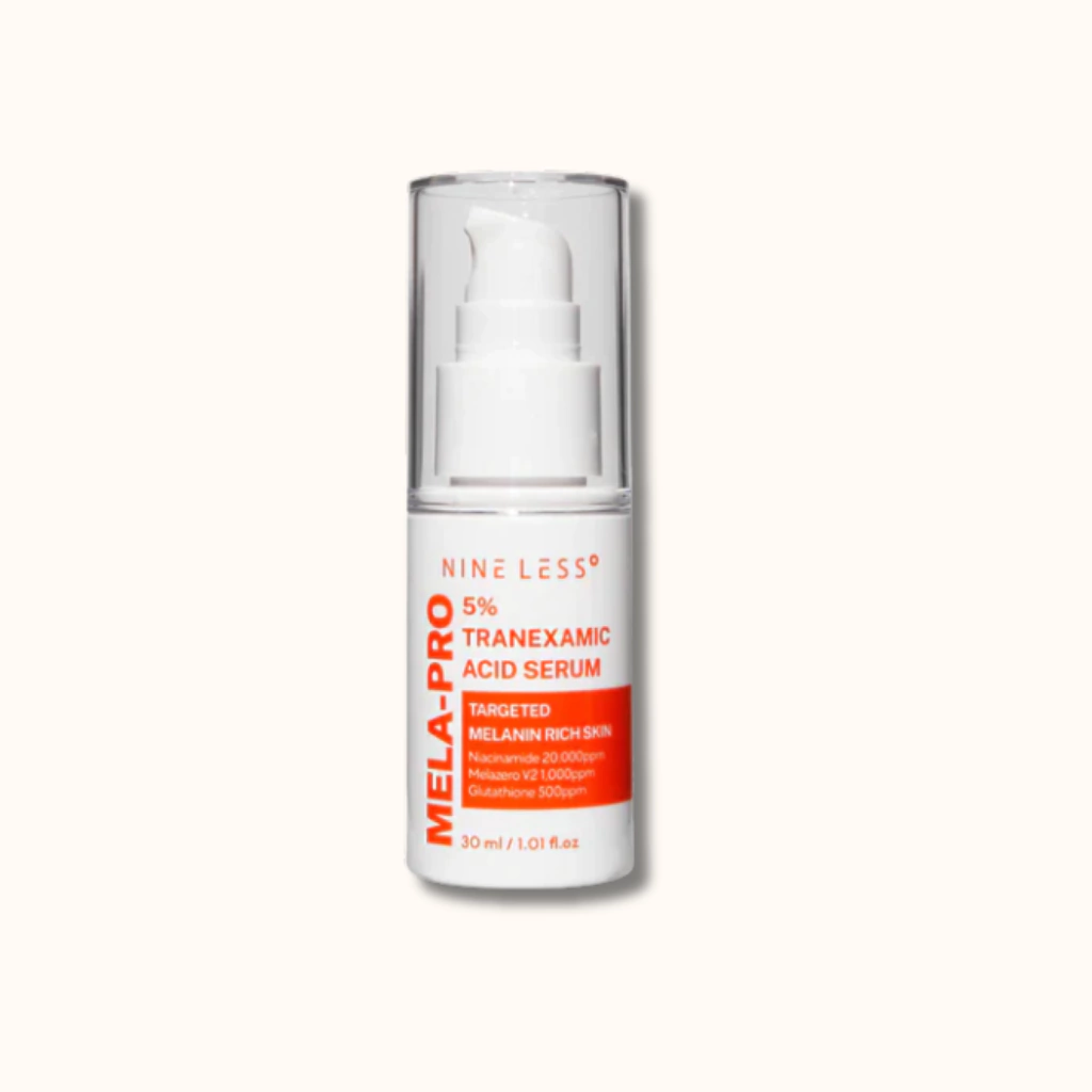 El [NINE LESS] MELA-PRO Tranexamic Acid Serum 30ml es un suero facial altamente eficaz formulado con ácido tranexámico para combatir la hiperpigmentación, las manchas oscuras y el tono desigual de la piel. Este potente ingrediente actúa inhibiendo la formación de melanina, ayudando a reducir la apariencia de manchas solares, melasma y otras imperfecciones. El suero también mejora la textura de la piel, dejándola más luminosa, uniforme y radiante. Con su fórmula ligera, es ideal para pieles con problemas de pigmentación y perfecto para uso diario.