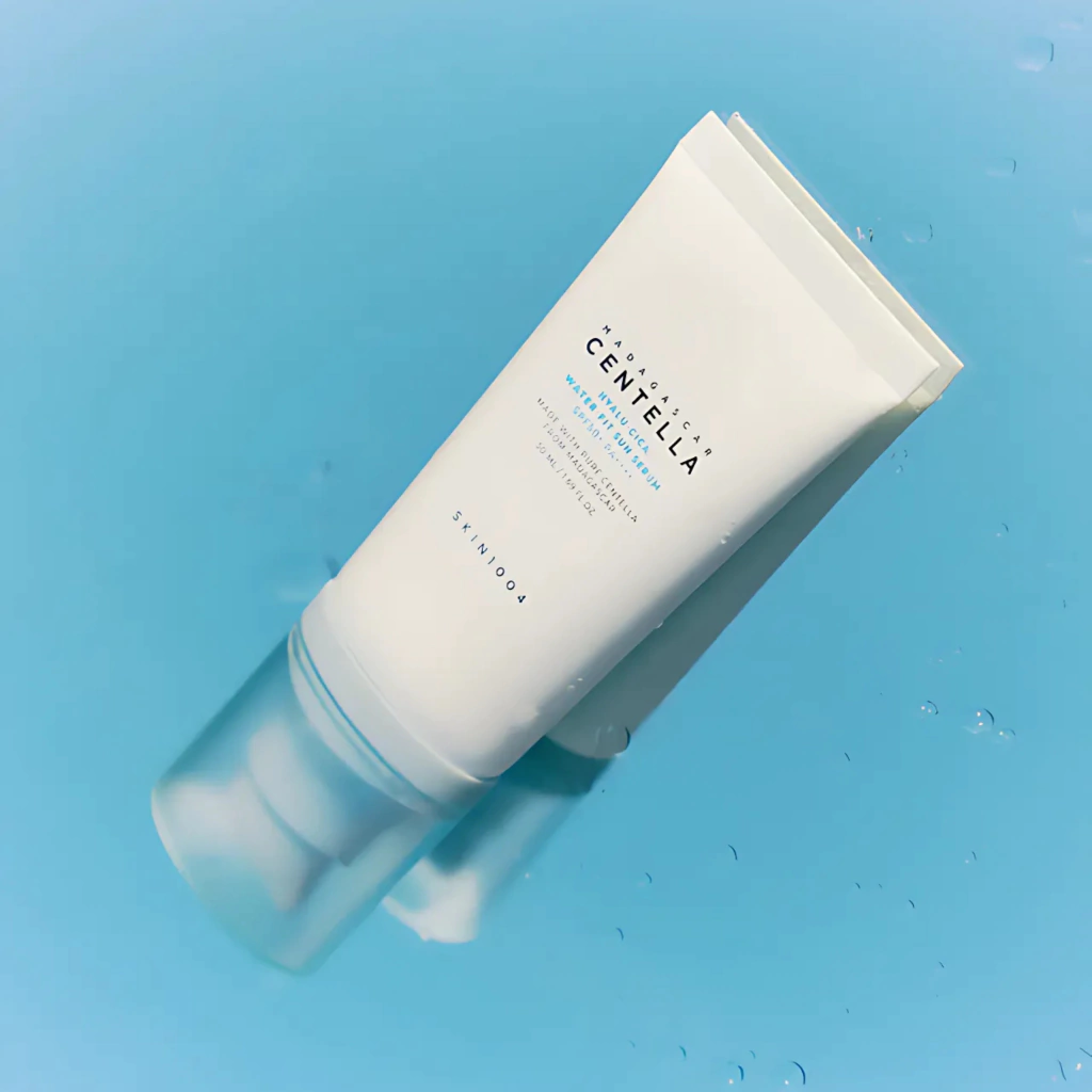 Este protector solar de amplio espectro (SPF 50+ PA++++) está formulado para proteger la piel de los dañinos rayos UVA y UVB mientras la mantiene fresca e hidratada. Contiene ingredientes clave como Centella Asiática (Cica), que calma la piel, y Ácido Hialurónico, que hidrata profundamente. La textura ligera y acuosa de esta fórmula permite que se absorba rápidamente sin dejar residuos pegajosos, lo que lo hace perfecto para usar a diario.