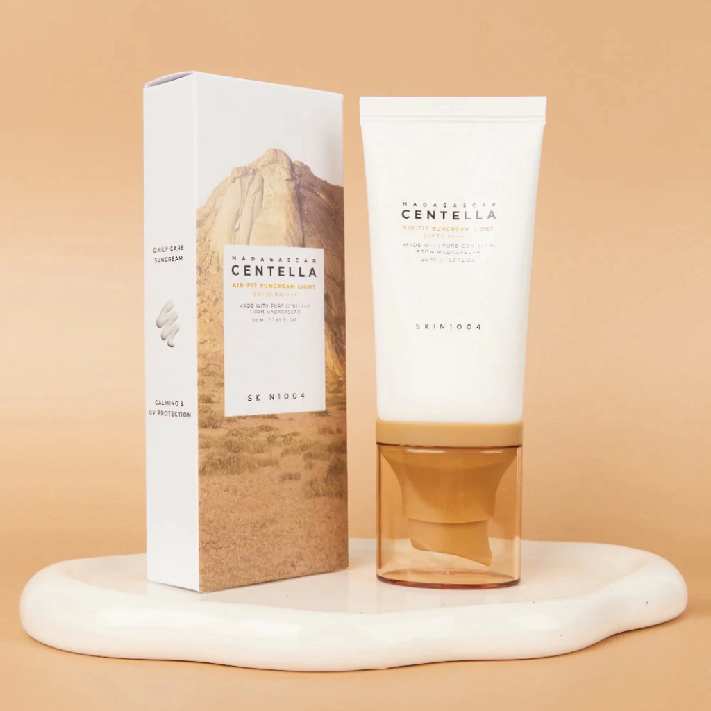 El [Skin1004] Madagascar Centella Air-Fit Suncream es un protector solar ligero y refrescante formulado con Centella Asiática proveniente de Madagascar. Este protector solar de SPF50+ PA++++ ofrece una alta protección contra los rayos UVA y UVB, mientras que al mismo tiempo calma y nutre la piel gracias a los beneficios de la Centella. Su fórmula de rápida absorción se adapta perfectamente al rostro, proporcionando una sensación de frescura y comodidad sin dejar residuos grasos ni pegajosos. Es ideal para pieles sensibles o propensas a irritaciones y para quienes buscan protección solar efectiva y una textura liviana.